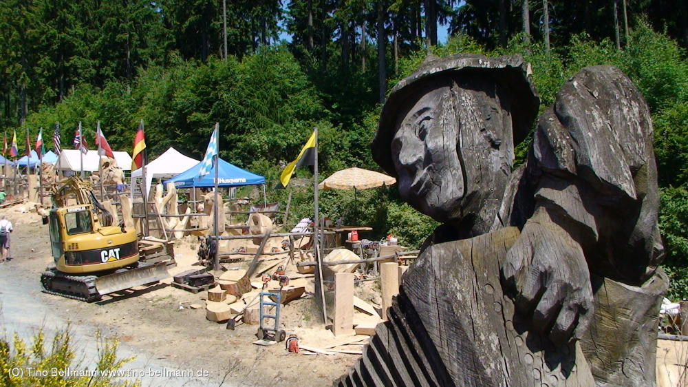 Anton Günther mit dem "Zerrwanst" (BLOCKHAUSEN)Der erzgebirgische Volksdichter und Volkssänger Anton Günther mit Akkordeon als Motiv einer früheren Kettensägenschnitzarbeit. Aufnahme aus "Blockhausen" (Dorfchemnitz), 25.5.2012