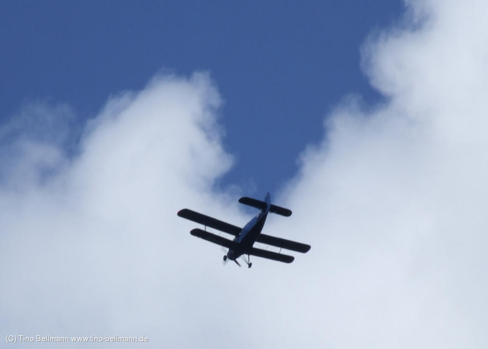 Historisches Doppeldeckerflugzeug über Holzhau (12.8.2012)