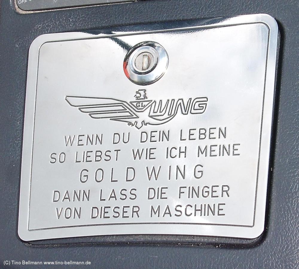 Gesehen beim Goldwingtreffen im Erzgebirge (Holzhau)Wenn Du Dein Leben so liebst wie ich meine GOLDWING, dann lass die Finger von dieser Maschine ! (16.05.2012) |