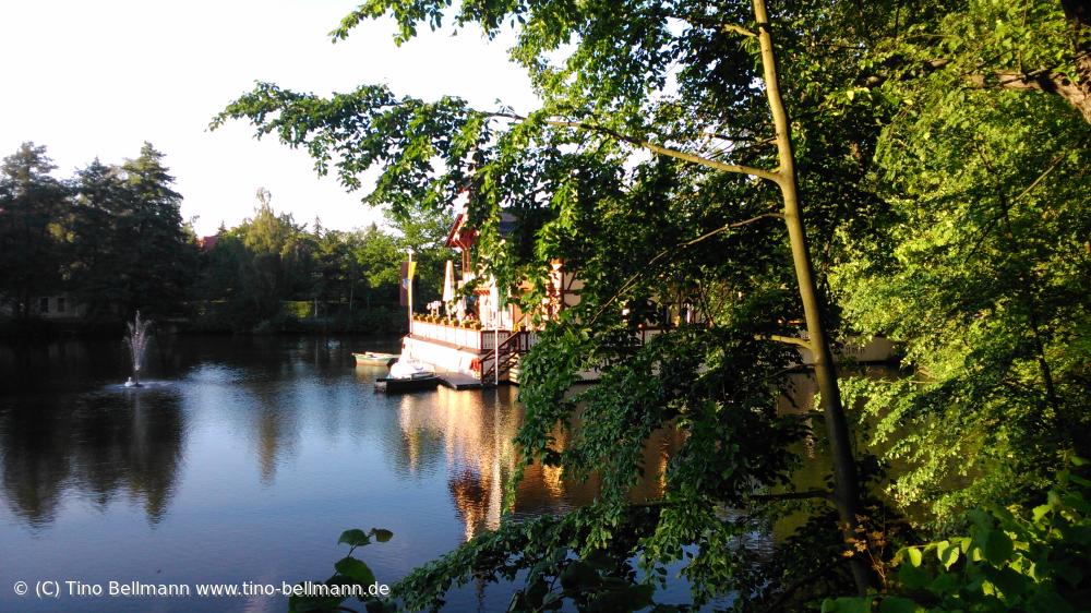 Das Schwanenschlößchen in Freiberg ist ein beliebtes Restaurant. Es gibt Gelegenheit, auf dem Teich zu gondeln.
