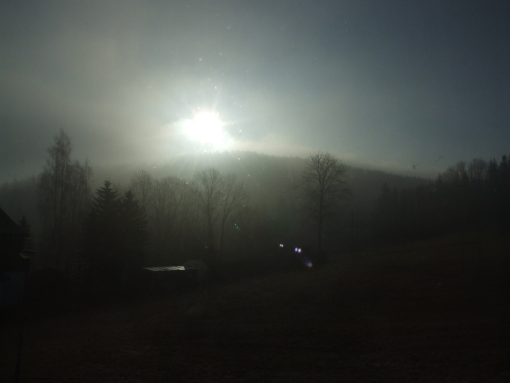 Sonne kämpft gegen Morgennebel über dem Waldhotel "Sachsenstern"Die Sonne kämpft gegen den Morgennebel in Holzhau.